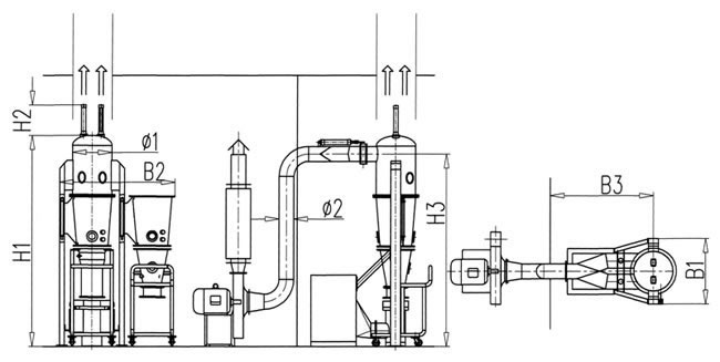 | الحجم للآلة الرئيسية (mm) | H1 | 1950 | 2260 | 2610 | 3170 | 3500 | |