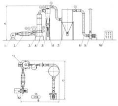 | 1. Ventilador 2.Radiador de vapor 3.Máquina principal 4.Separador ciclón 5. Válvula de descarga 6.Martillo neumático |