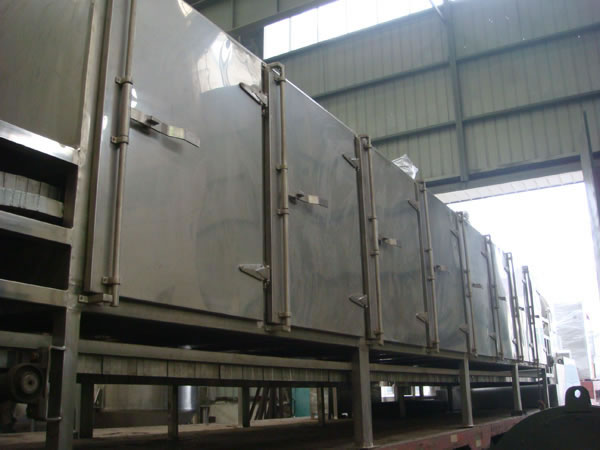 Le sécheur à bande est très populaire pour le séchage en continu. Il est largement utilisé dans l'industrie chimique, alimentaire, pharmaceutique, des matériaux de construction, électronique, et plus encore. Il est particulièrement adapté au séchage des matières premières en bandes ou en granulées. Le sécheur à bande peut également sécher des matières premières en pâte comme le gâteau de filtre, après avoir été formé par un granulateur ou une extrudeuse.