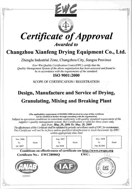 Equipement de séchage, Matériel de granulation, Equipement de mélange, Machine de broyage, Machine de criblage