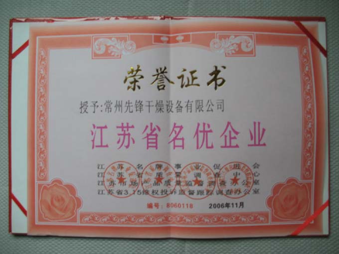 经相关职能部门调查审核评议,我司相关条件均已符合名优企业标准,现已被正式评定为“江苏省名优企业”。评审结果已在《江苏经济报》予以公告,奖牌和证书已下发至我司。