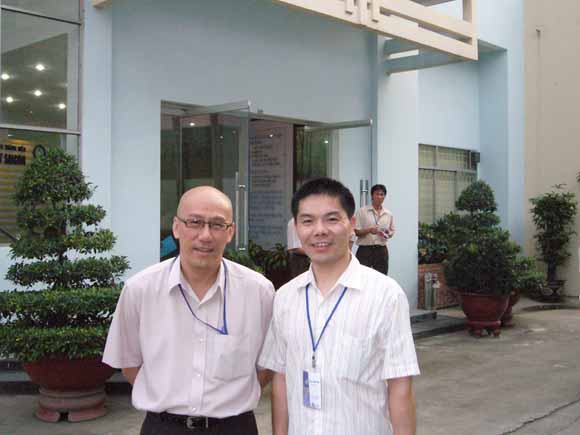 [先锋公司总经理查协芳与越南西贡植保公司(越南^大农药生产企业)YEO JOO HUA先生交流后合影留念]