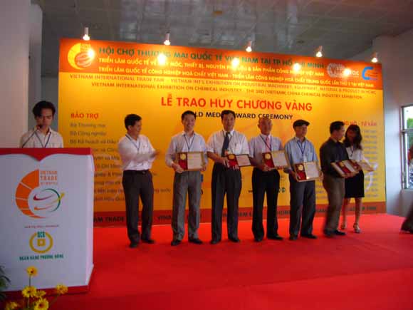 [组委会对参展部分^企业进行授勋表彰,总经理查协芳(右五)上台领奖]