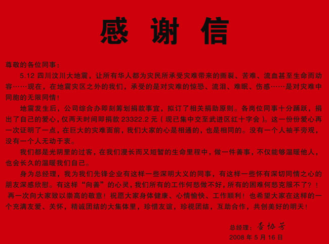 关键词:[图]捐赠汶川大地震,先锋公司全司动员