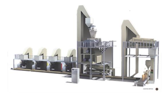 制粒系统:料仓,喂料机,辊压机,制粒机,筛分机,反料装置,自控柜