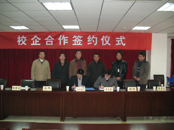 [先锋干燥总经理周友来和电子电气工程学院院长在协议书上签字]
