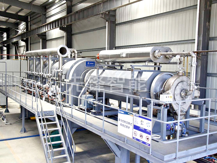 湿物料从干燥机一端投入后,在内筒均布的抄板器翻动下,物料在干燥器内均匀分布与分散,并与并流(逆流)的热空气充分接触,加快了干燥传热,传至推动力。在干燥过程中,物料在带有倾斜度的抄板和热气流的作用下,可调控地运动至干燥机另一段星形卸料阀排出成品。